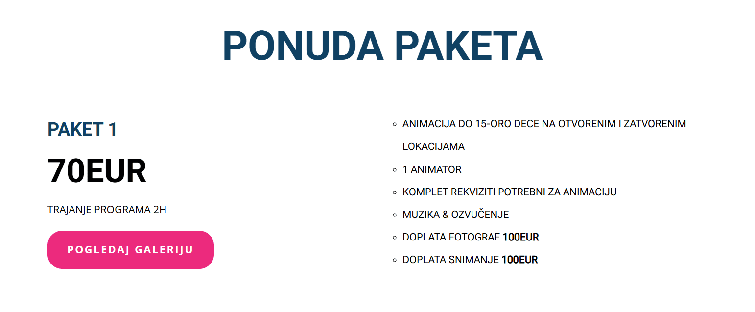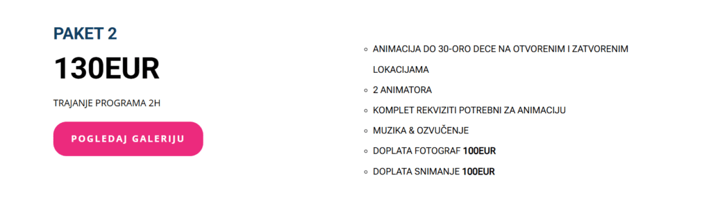 Animacija se može organizovati napolju ili u zatvorenom prostoru – u igraonici, vašem domu ili restoranu. Program se prilagođava vašim željama i vremenskim uslovima, tako da svaki rođendan bude jedinstven i nezaboravan.